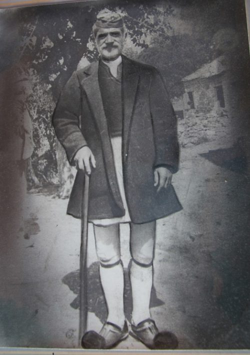 Στη φωτογραφία, περίπου του 1920, φαίνεται ο χωριανός Θεοδόσης Κωστόπουλος, με την χαρακτηριστική τοπική στολή που περιλαμβάνει υφαντά ρούχα.