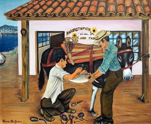 Και τα ζώα που χρησιμοποιούσαν για μεταφορές, γαϊδούρια και μουλάρια, ήθελαν κάθε τόσο πετάλωμα. Κάμποσοι έκαναν τον πεταλωτή, καλύτερος όμως θεωρούνταν ο Νίκος ο Καραγεώργος.
