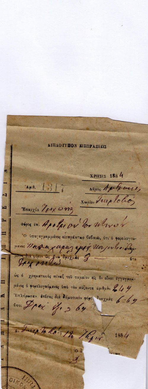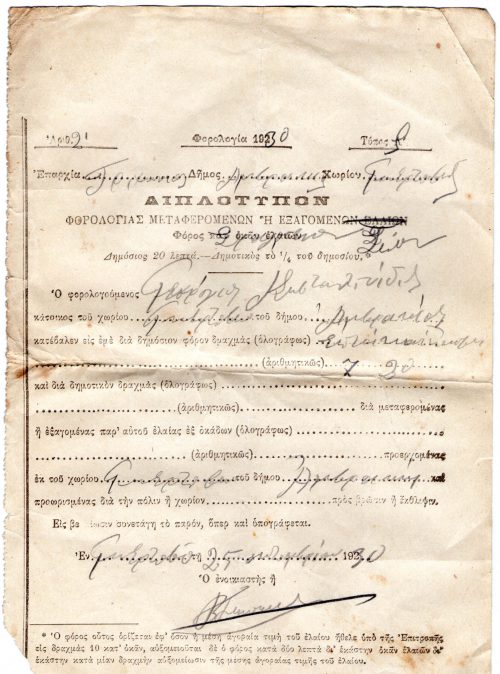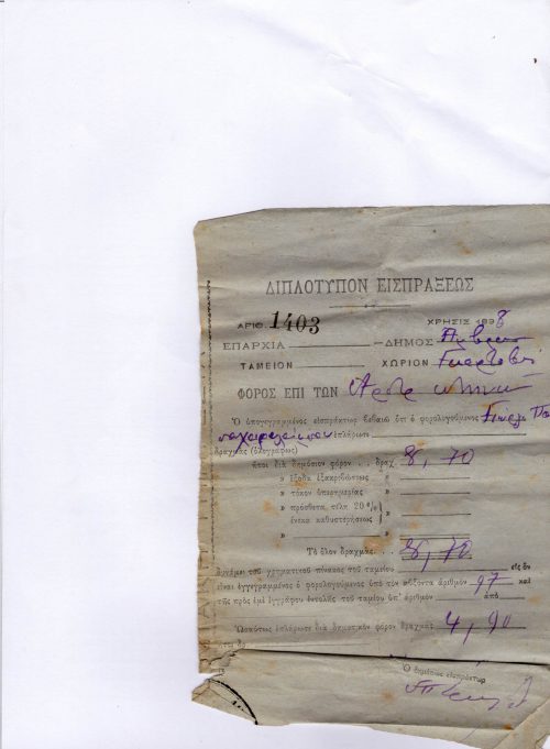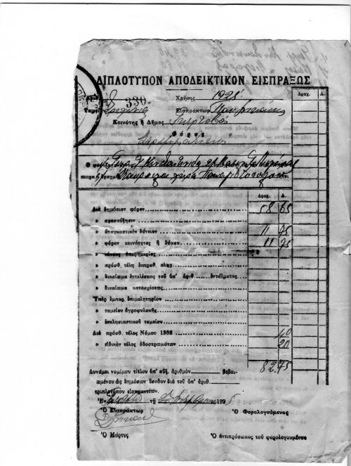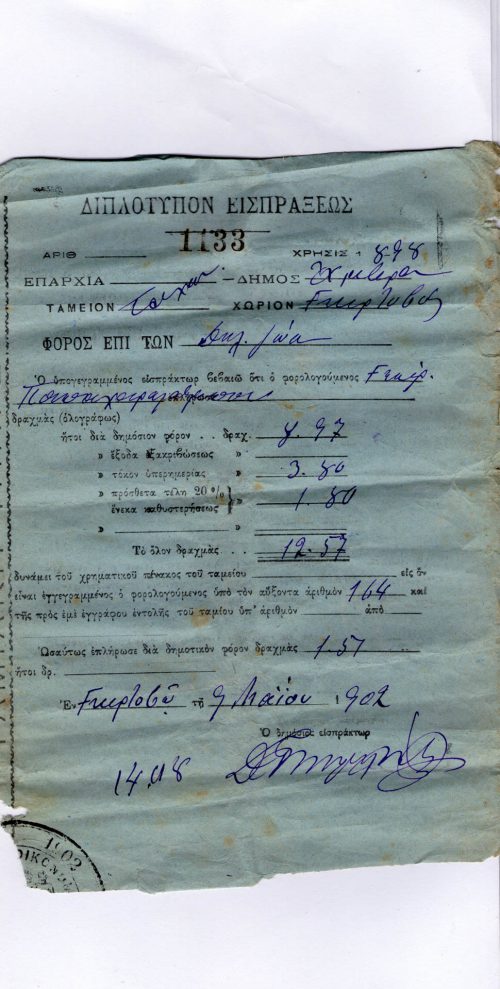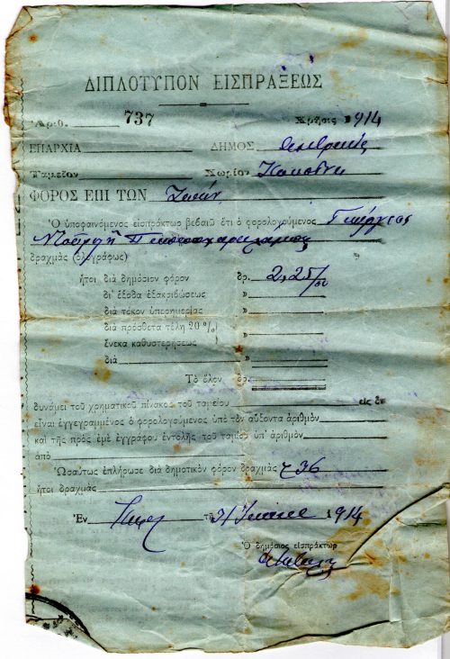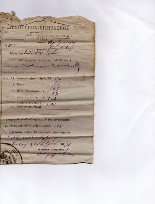 Αποδείξεις πληρωμής φόρων Post navigationPreviousPrevious post:Έγγραφο προς ΠαπαΧαράλαμπο 1889NextNext post:Σημείωμα ιδιοκτήτη αγροκτήματος 1966